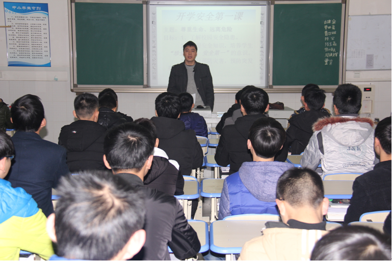 2017年2月13日,学校教职工大会上,黄斌副校长就开学时的安全工作做了详实部署。
