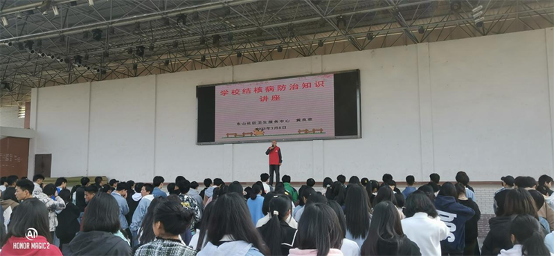 2023年3月8日上午10时,东山社区卫生服务中心副院长黄良荣一行3人,为我校师生进行“学校结核病防治知识”和“青少年艾滋病防治知识”讲座。