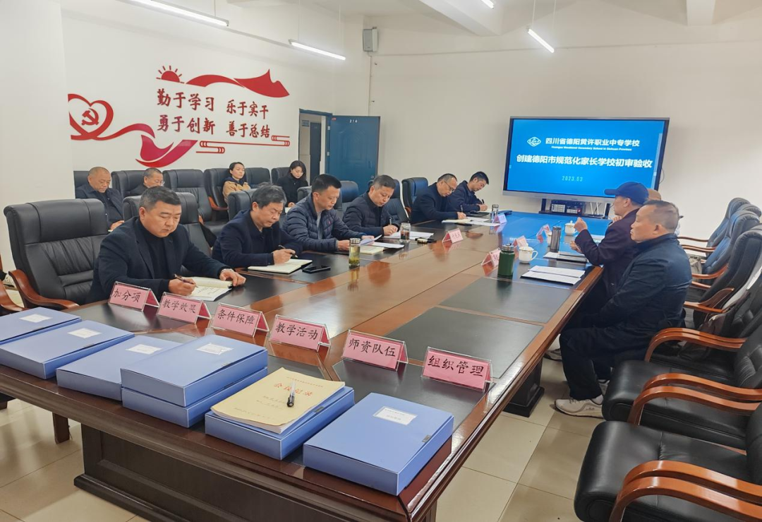 2023年3月23日,族阳区教育局创建规范化家长学校验收小组德阳市教育系统关工委副主任、旌阳区教育局关工委执行主任李义阳,德阳市规范化家长学校评估专家组成员、旌阳区教育局关工委常务副主任冯忠荣,四川省家庭教育研会理事会理事、四川省家长学校总校特聘讲师、旌阳区教育局妇儿工委主任王玉霞一行三人,到四川省德阳黄许职业中专学校创建德阳市规范化家长学校进行初审验收。学校党总支书记、校长付先庆同志及负责该项工作的部门领导参加了初审会。