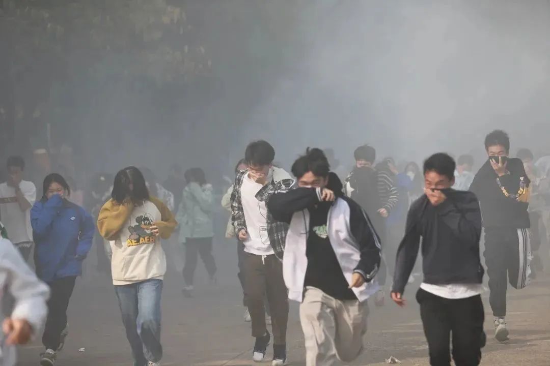 10时,全校师生在操场集会,安办李辉老师讲解本次教学楼火灾疏散演练的目的、意义、流程及安全注意事项;10时35分,警报响起,各处室及值周行政、值班老师、德育干事、安保人员组织学生疏散,各班学生在任课老师、班主任、点位值守老师的指挥下,按照指定路线,安全、迅速、有序地进行紧急疏散。同时进行了“浓烟区域逃生”及灭火器正确使用方法的实操训练,观看《校园火灾警示教育片》。