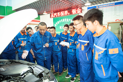 全国优秀教师 工业机器人工程师 周久华(左一)老师在教学中